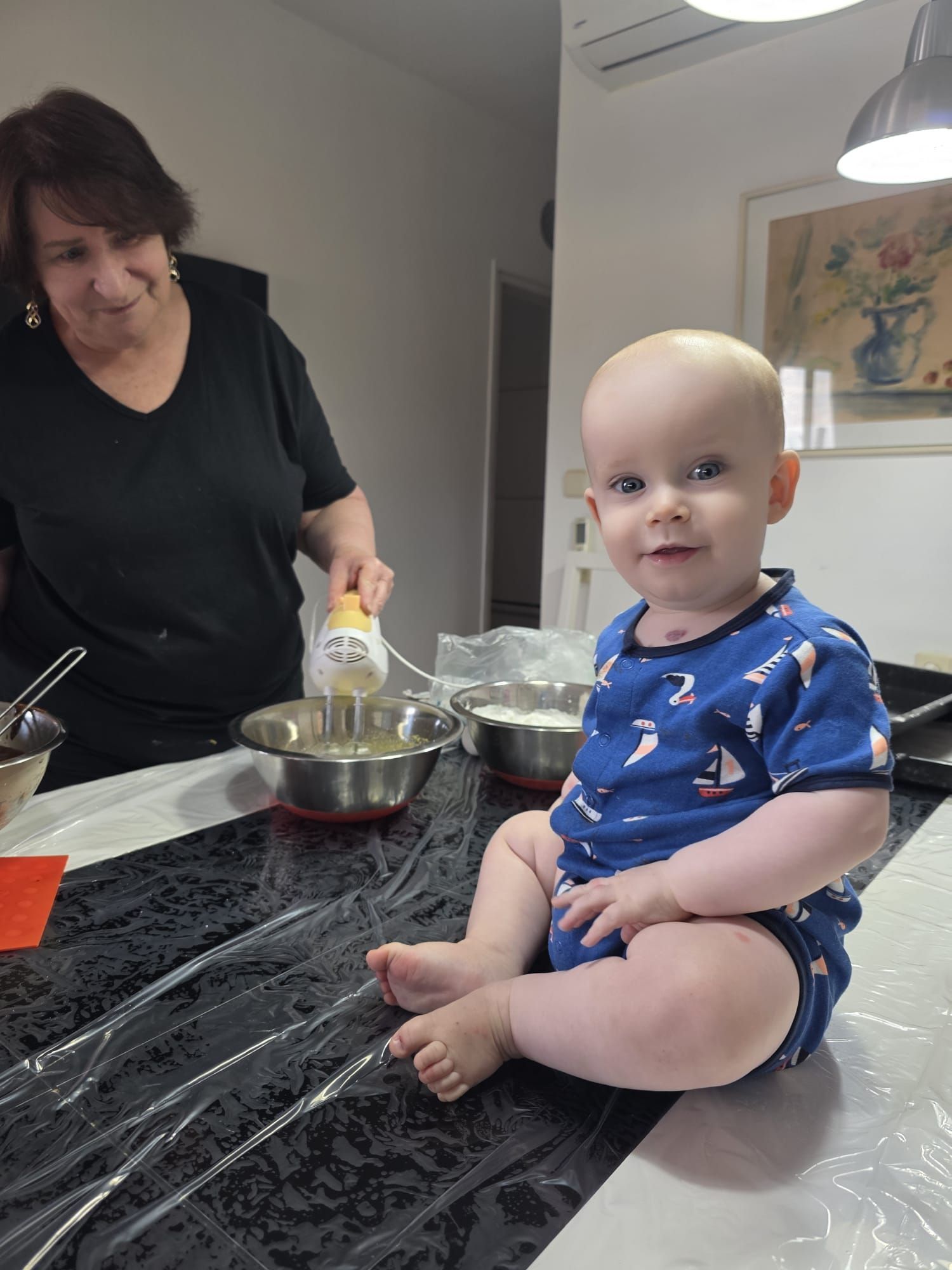 וככה יוצא שאני מלמדת לקפל את קצף הביצים לתוך בבלילת השוקולד. השוואת מרקמים. ואז אני אומרת להכניס ולהוציא. לאט. להרים את הבלילה הכבדה למעלה ואז בתנועות עטיפה להמשיך ולבלול את הקצף לתוך עיסת השוקולד.