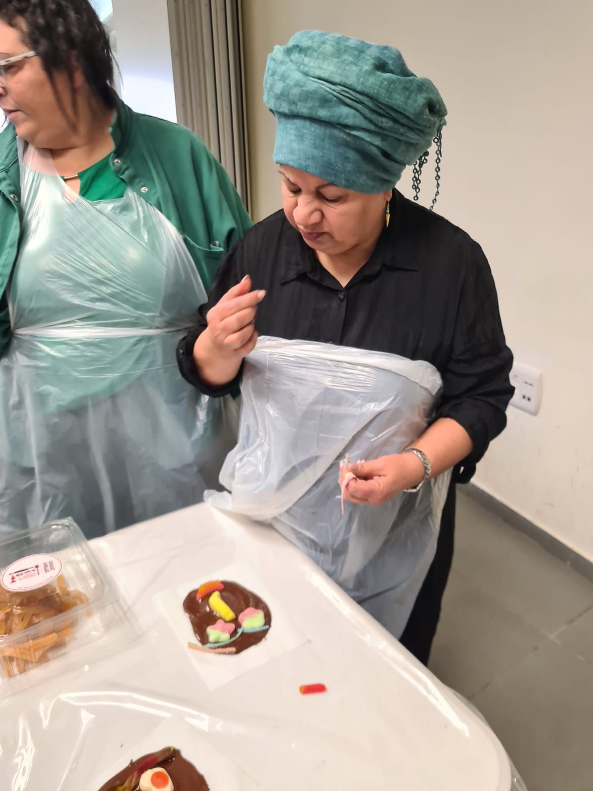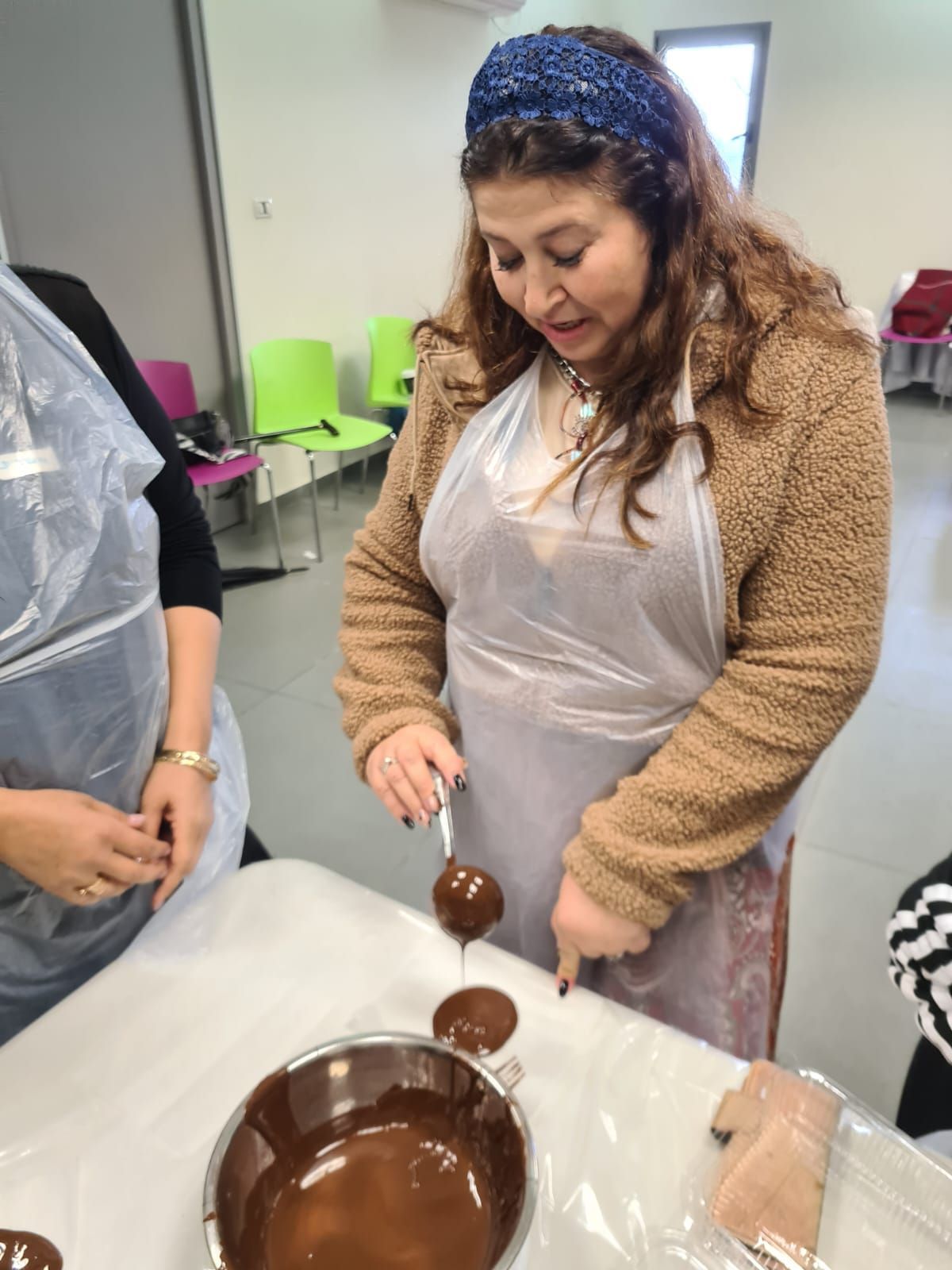 כשלמדתי להפעיל את הסדנאות שוקולד שלי זה היה ביישוב שלי. בישוב עלי. אני התאמנתי על הבנות אצלנו ביישוב. כדי שהבנות תגענה דיברתי עם הבעלים שלהן. הבטחתי שהם יקבלו משהו בסוף הסדנה או ימצאו את השוקולדים מחר בבוקר. זו הייתה ההבטחה שהם ישארו כבייבי סיטר לילדים.